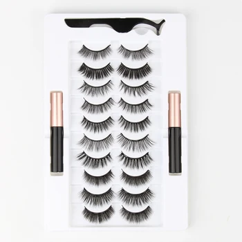 3/5/10pairs Magnetic Eyelashs 3D mink Lashes Long Lasting Magnet Liquid Eyeliner & Tweezer Set Natural Fake Eyelash Makeup Kit
